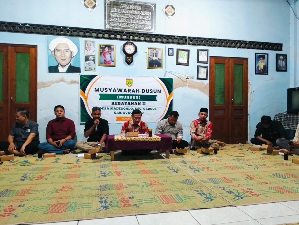 Musyawarah Dusun adalah salah satu kegiatan awal dalam proses penyusunan Rencana Kerja Pemerintah Desa untuk tahun yang akan datang. Musyawarah dusun bertujuan untuk menampung semua usulan masyarakat atau menampung semua gagasan dalam melaksanakan pembangunan di tahun yang akan datang, dalam pelaksanaan musyawarah dusun, pemerintah desa madegondo melaksanakan kegiatan tersebut dalam empat kali pertemuan, dimana masing-masing Kepala Dusun melaksanakan musyawarah dusun yang di pimpin langsung oleh kepala dusun di masing-masing wilayah.