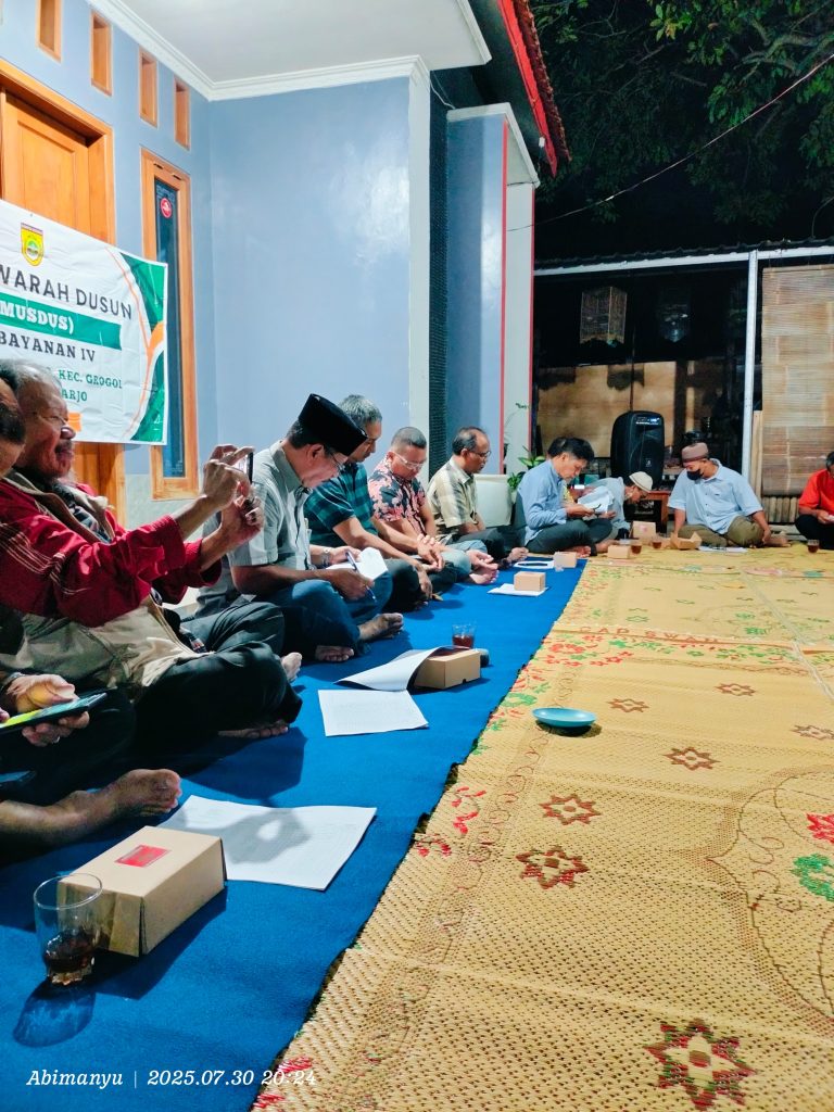 Musyawarah dusun yang dilaksanakan di masing-masing kebayanan / tingkat dusun yang dilaksanakan di tahun 2025 ini adalah dimana kegiatan tersebut mengacu untuk memverifikasi atau mengkroscek kegiatan yang di usulkan pada saat penyusunan perubahan RPJMDes (Rencana Pembangunan Jangka Menengah Desa) dimana perubahan RPJMDes tersebut berubah dan diperpanjang masa nya menjadi bertambah 2 tahun, yang menetapkan RPJMDes berubah menjadi 8 Tahun masa kerja Kepala Desa yang baru.